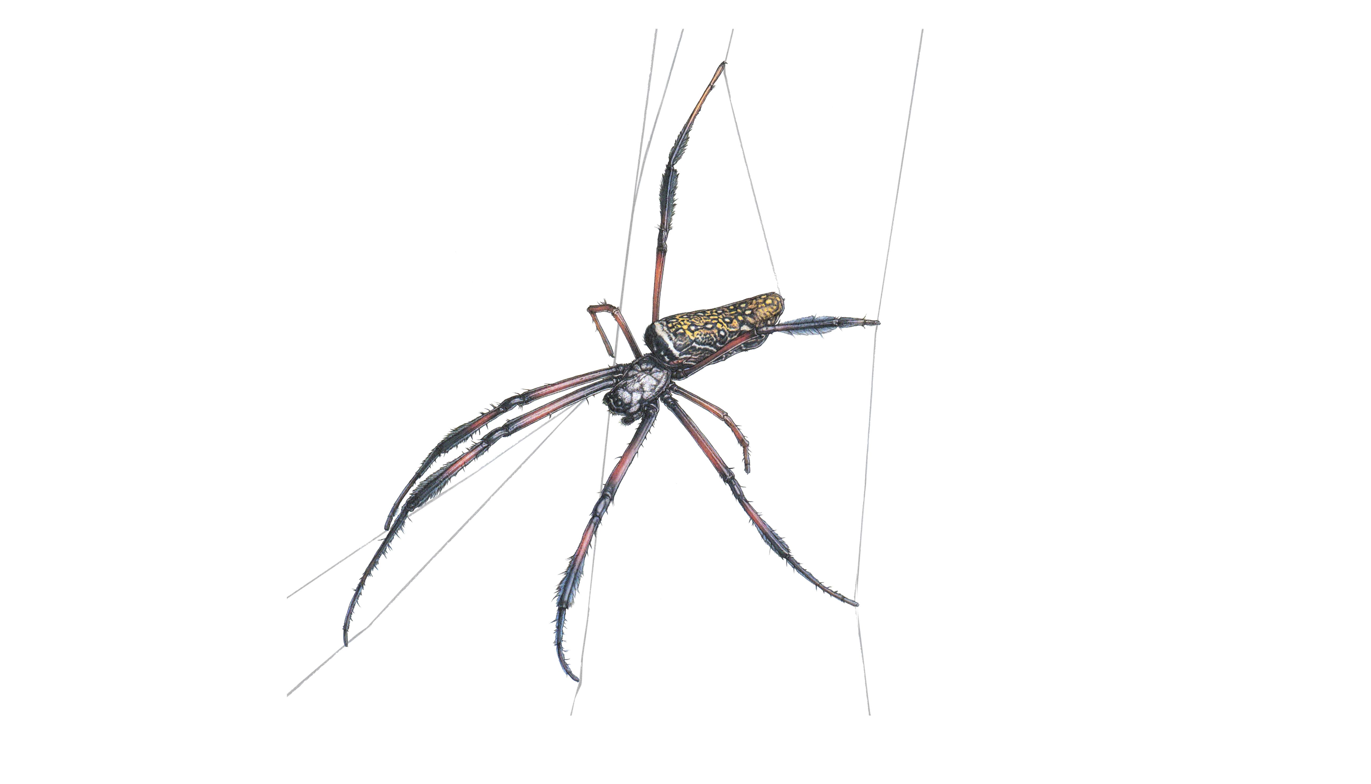 | Verwandtschaft | Spinnentiere, Webspinnen, Seidenspinnen (7 Gattungen mit 42 Arten) |