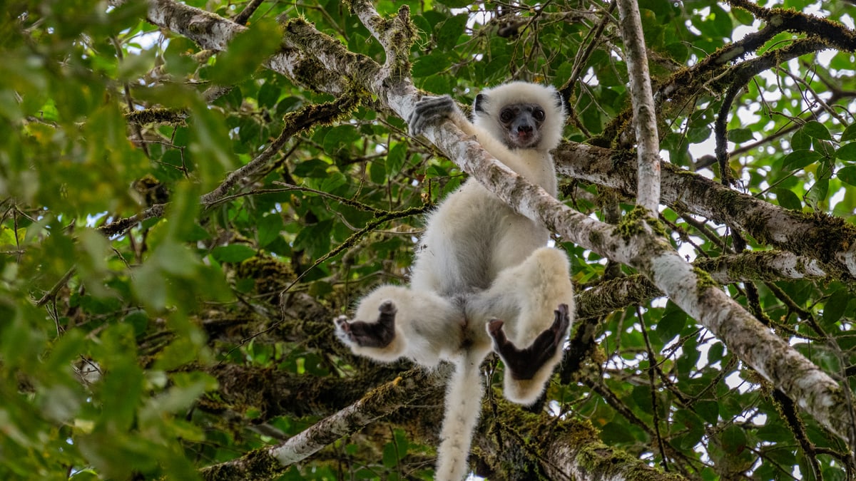 Seiden-Sifaka auf Madagaskar. Foto: Zoo Zürich, Martin Bauert.