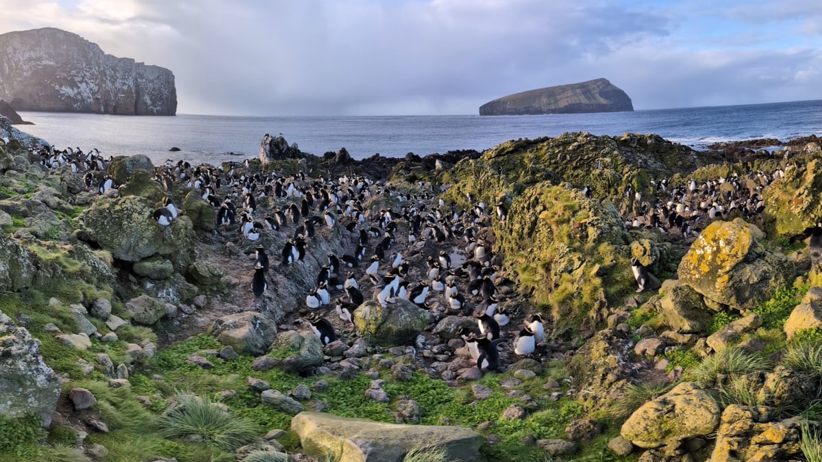 Oktober bis Dezember 2024 verbrachte der Naturschutzbotschafter des Zoo Zürich Thomas Mattern zusammen mit zwei weiteren Forscher*innen auf den Antipoden-Inseln. «Unser Expeditionsziel war, die auf dieser subantarktischen Inselgruppe sowie den Bounty-Inseln vorkommenden Kronenpinguine zu zählen und den aktuellen Bestand im Detail zu erfassen.», erklärt Thomas Mattern. Dazu absolvierte er zu Fuss 32 Expeditionen zwischen drei und neunzehn Kilometern in 28 verschiedene Regionen der Insel. Mit dabei immer seine Drohne, die er insgesamt 42-mal in den Himmel steigen liess und in 13'265 hochauflösenden Fotos die Pinguinkolonien vor Ort dokumentierte.