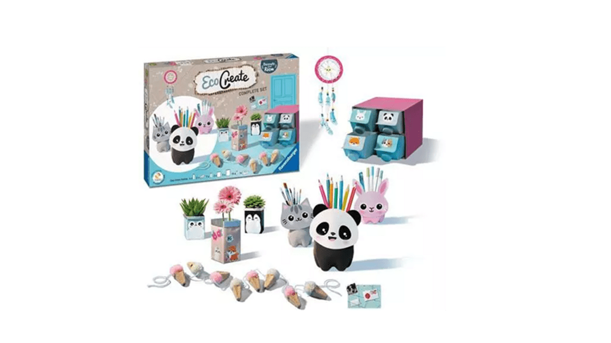 Rechtzeitig zum Herbst haben wir in unserem Onlineshop und in unseren beiden Shops vor Ort im Zoo ein tolles Upcycling-Bastelset im Angebot. Mit «EcoCreate Maxi» kreieren Kinder ab 6 Jahren tolle Upcycling-Projekte.