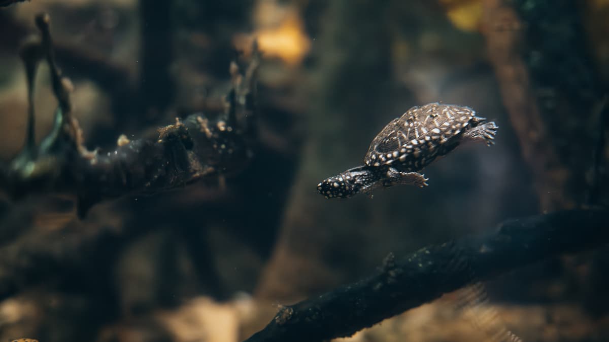 Black pond turtles prefer waters with dense vegetation that provides them with cover, as well as places to lie down and sunbathe. In summer, the animals usually remain submerged in the water or can be seen just poking their heads out of the water. In winter, they rest under bushes, in reeds and in dry leaves.